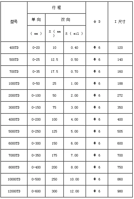 1. 线性量程:± 10 ~± 800mm 内任何规格
